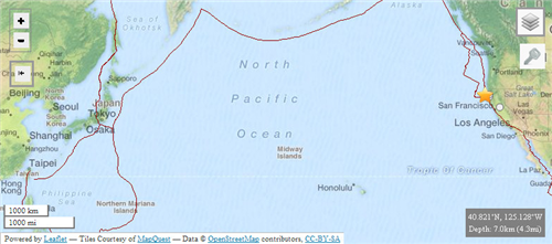米カリフォルニア州北部ユーレカの沖合約80キロの太平洋を震源とする地震があり、