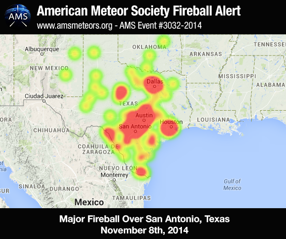 11月09日 米テキサス州各地で火球の目撃情報
