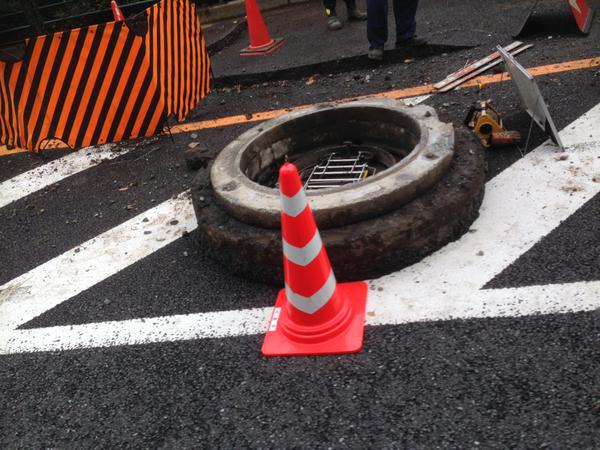 下水が急に水かさ増して、空気圧でマンホールの蓋が飛んだか