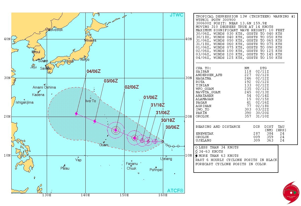 30日夜、日本のはるか南の海上で、台風13号が発生しました。