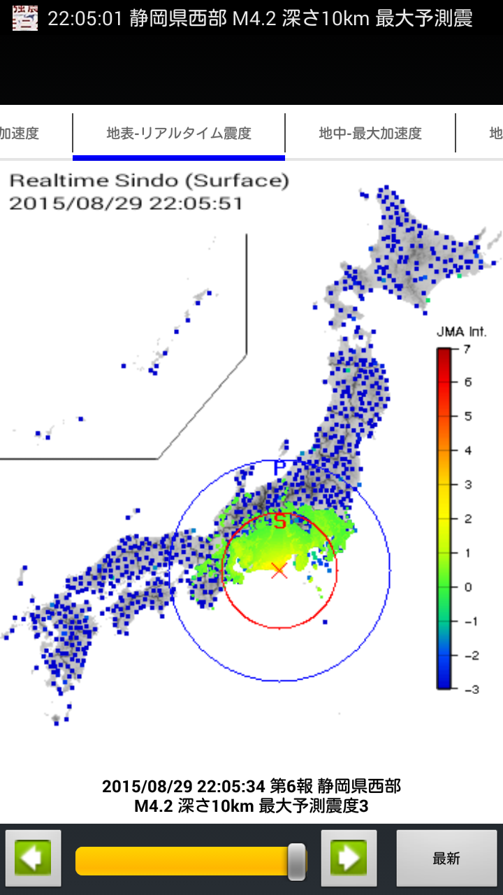 2015-08-29 22:05:01.75 静岡県南西部 34.637N 138.192E 10.7km M3.6