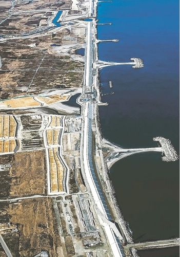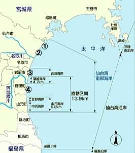 仙台湾南部海岸で計画されている防潮堤の総延長は46キロに及び、整備局のほかに農林水産省、水産庁、県が工事に当たっている。工事は18年3月末までに全て完了する見通し。