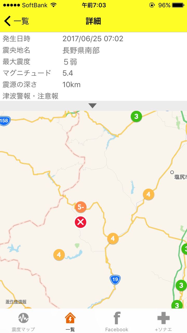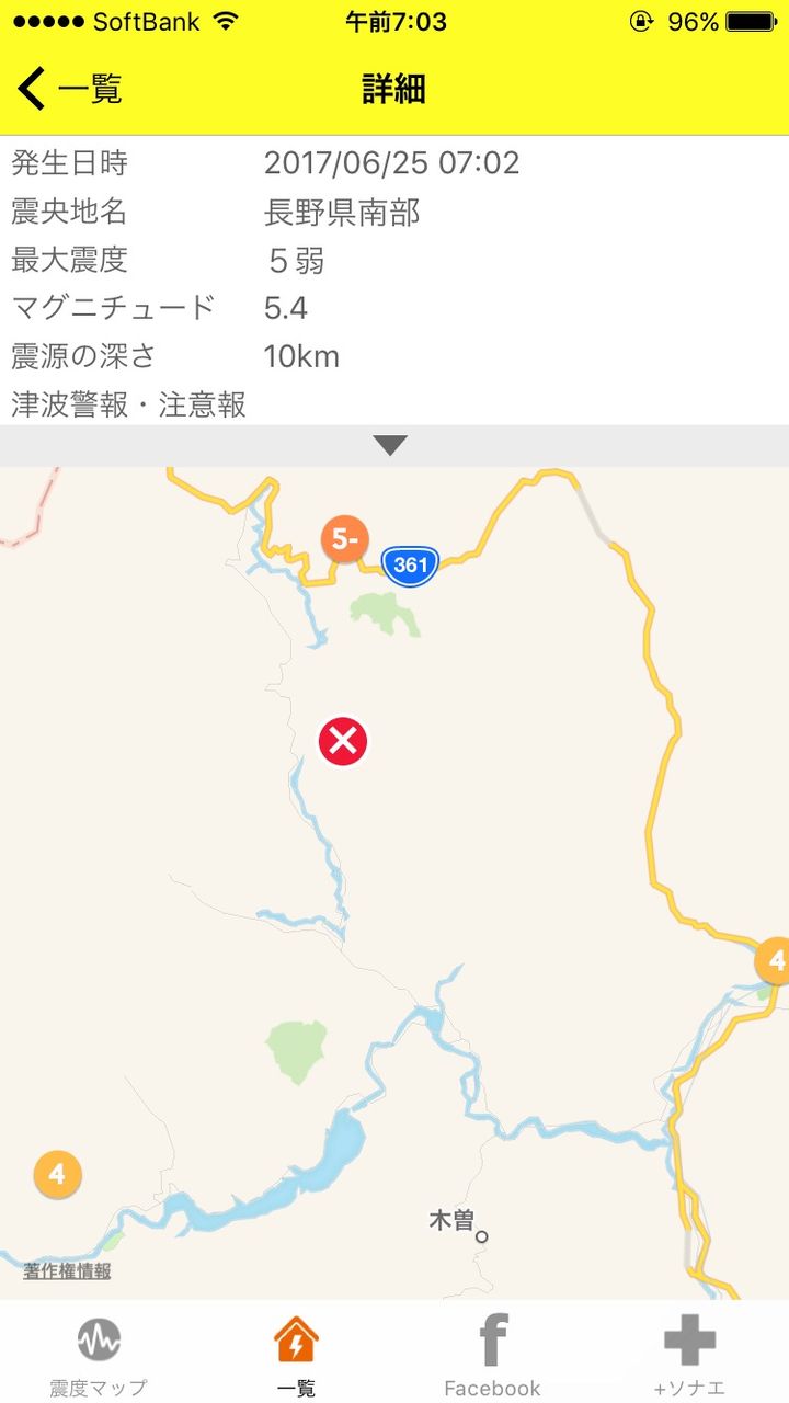 予測震度: 3.8 (長野県木曽郡木曽町 付近)
