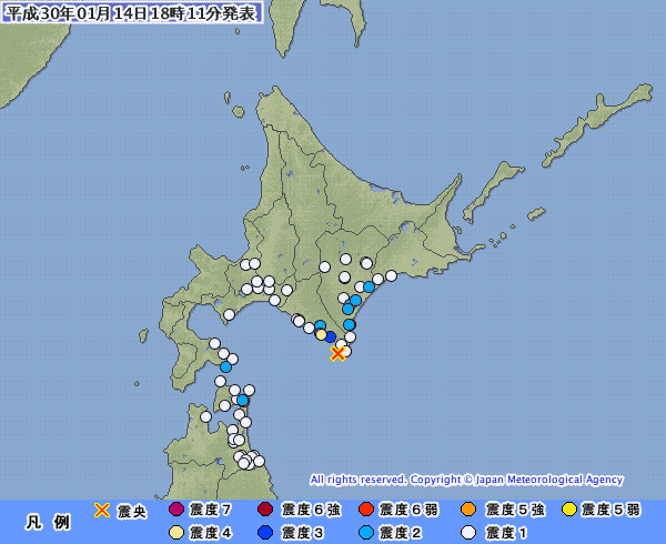 188: M7.74(北海道【緊急地震:浦河沖M4.6最大震度3】) 2018/01/14(日) 18:10:01.27