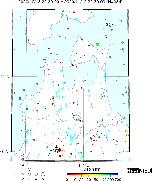 震源地は、津軽海峡(北緯41.4度、東経141.2度)で、震源の深さは約90km、地震の規模(マグニチュード)は3.1と推定されます。
