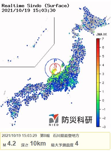 最近能登で起きてた地震とは震央が微妙にズレてんだな。