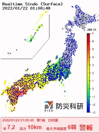 234: M7.74(やわらか銀行[警報]日向灘M6.5/40km震度5強) 2022/01/22(土) 01:09:20.51
