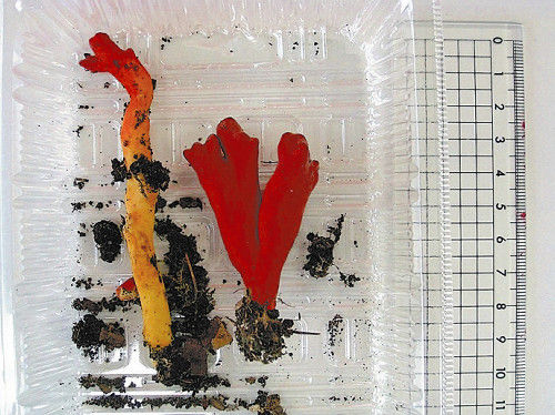 県内では2000年、食用の「ベニナギナタダケ」と間違ってカエンタケを食べた健康被害が報告されている。