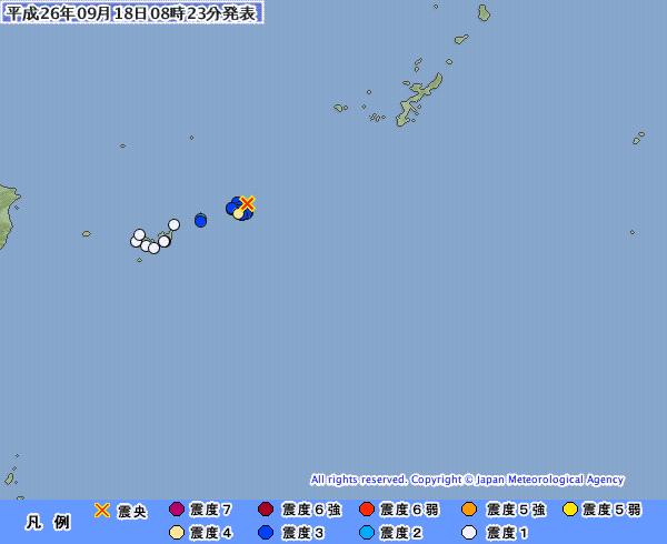 震源地は、与那国島近海(北緯24.0度、東経122.5度)で、震源の深さは約30km、地震の規模(マグニチュード)は5.5と推定されます。