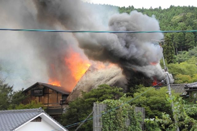 母屋から出火し、燃え広がったという。当時、宿泊客はおらず、従業員は逃げて